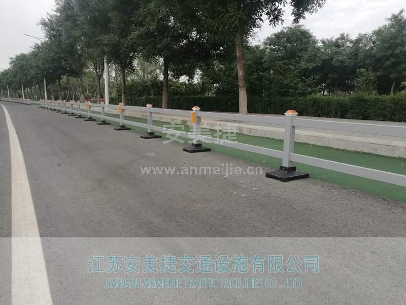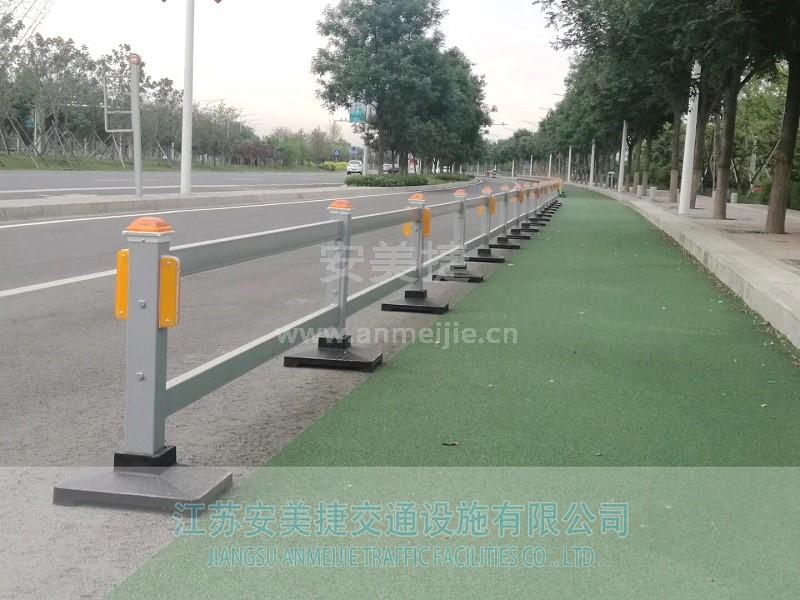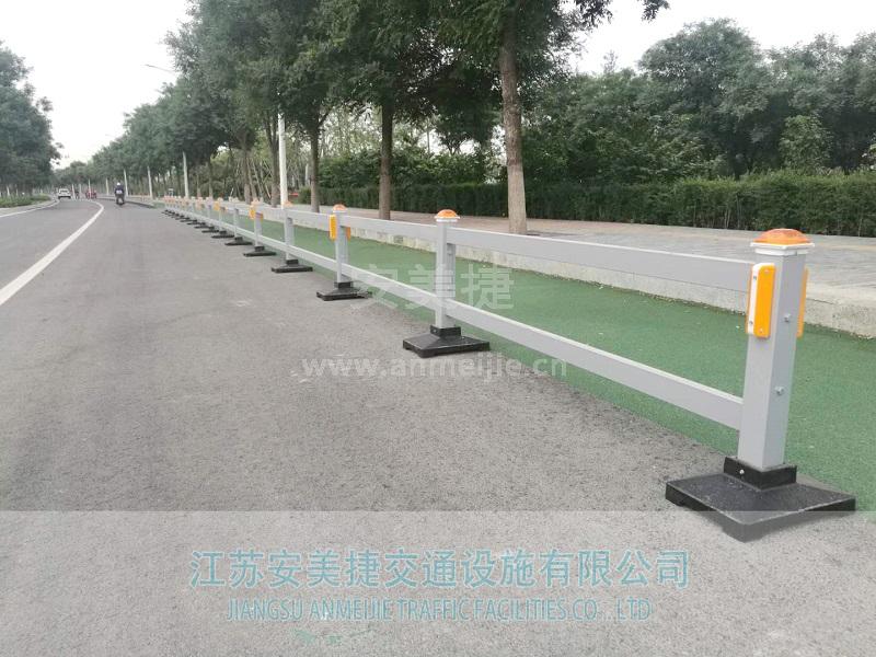二横杆道路隔离护栏形式比较特别,能融和现代都市空间及自然环境。具有白、蓝、红、绿等多种颜色,色彩艳丽、装饰性强,可与其他材料组合使用。